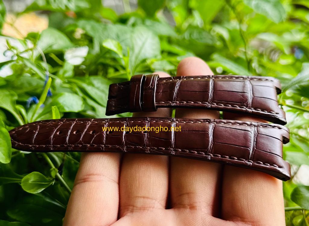Dây da đồng hồ Patek 5712, sản phẩm được làm theo tiêu chuẩn khắc khe của Patek, đúng chuẩn 5712, đầu dây có bọc kim loại.